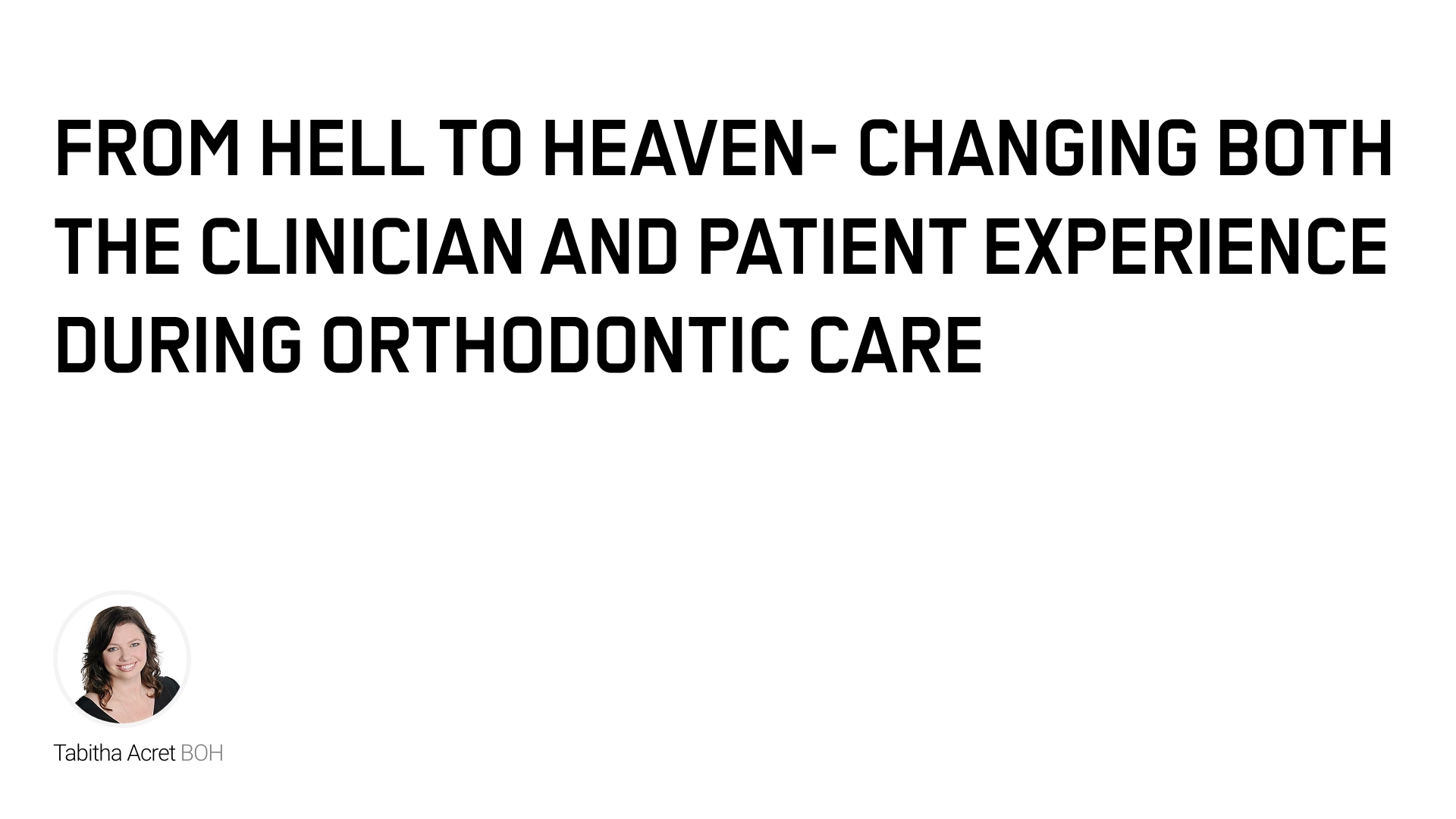 From Hell to Heaven- changing both the clinician and patient experience during orthodontic care